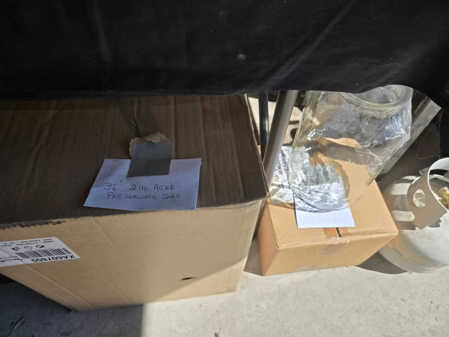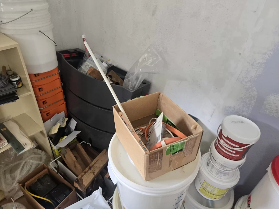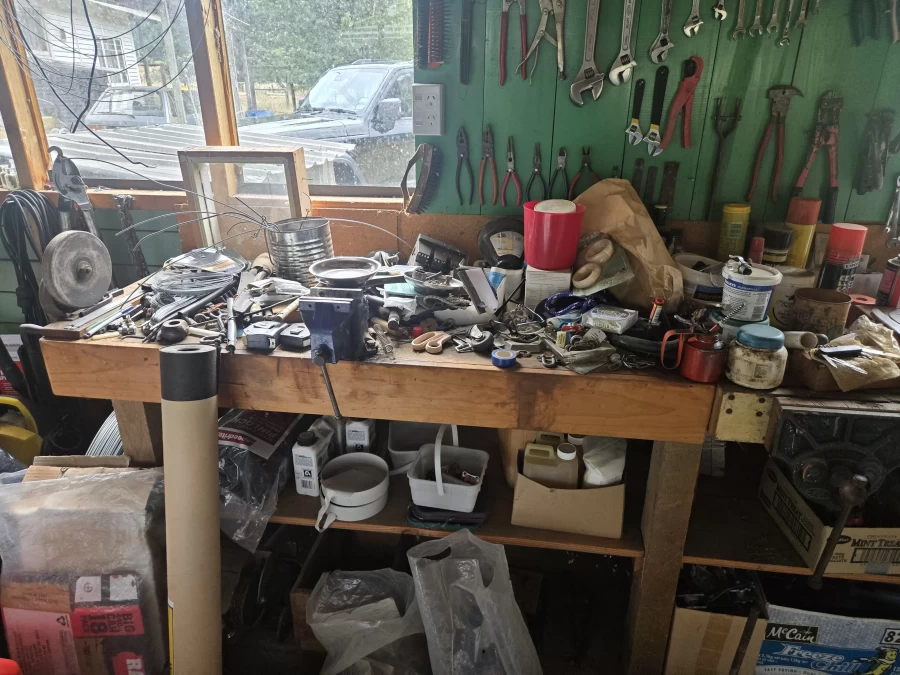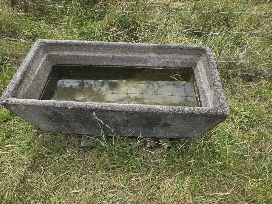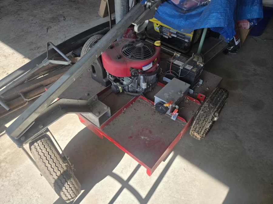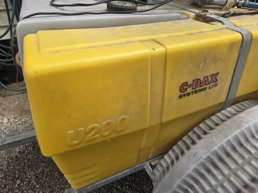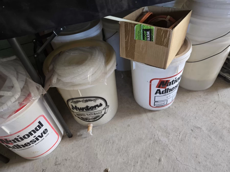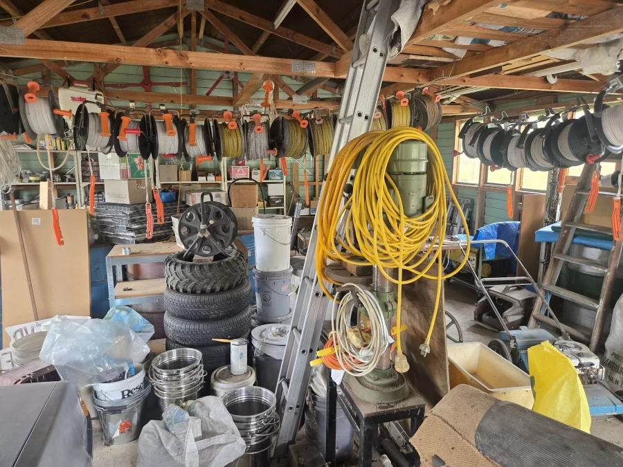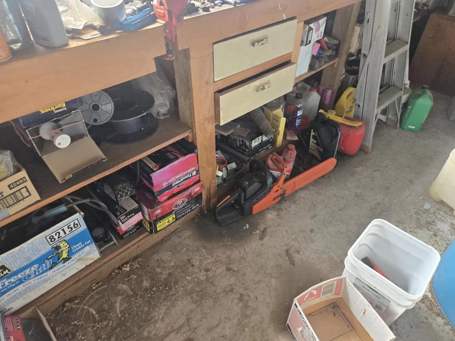 40 big round bales, spray unit, calf feeders, tools, trailer,