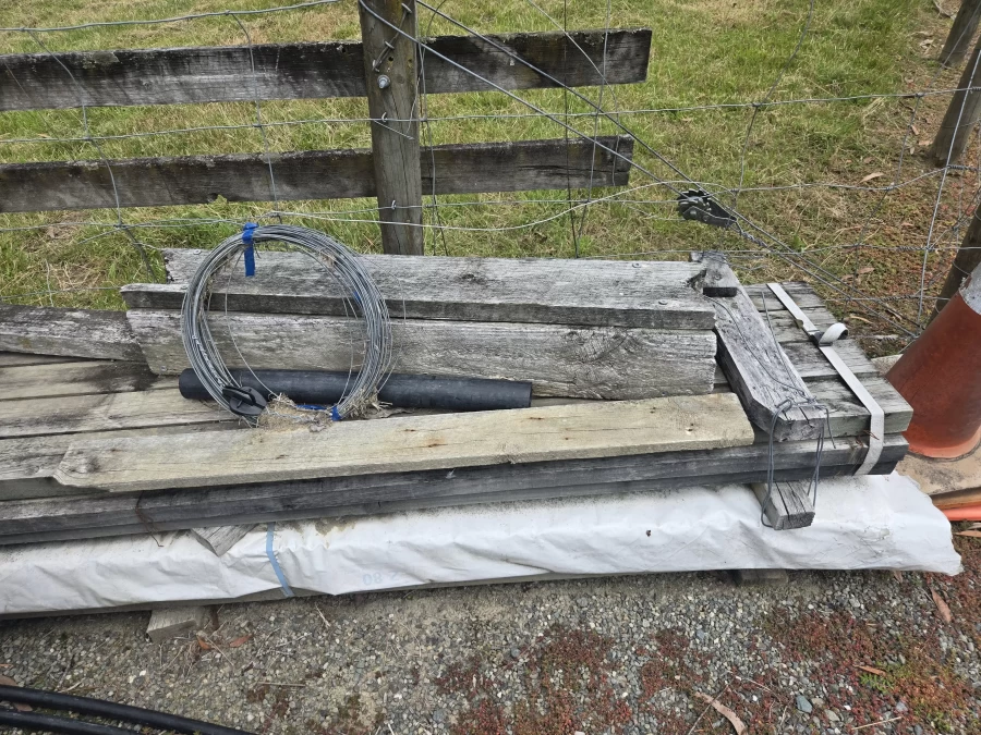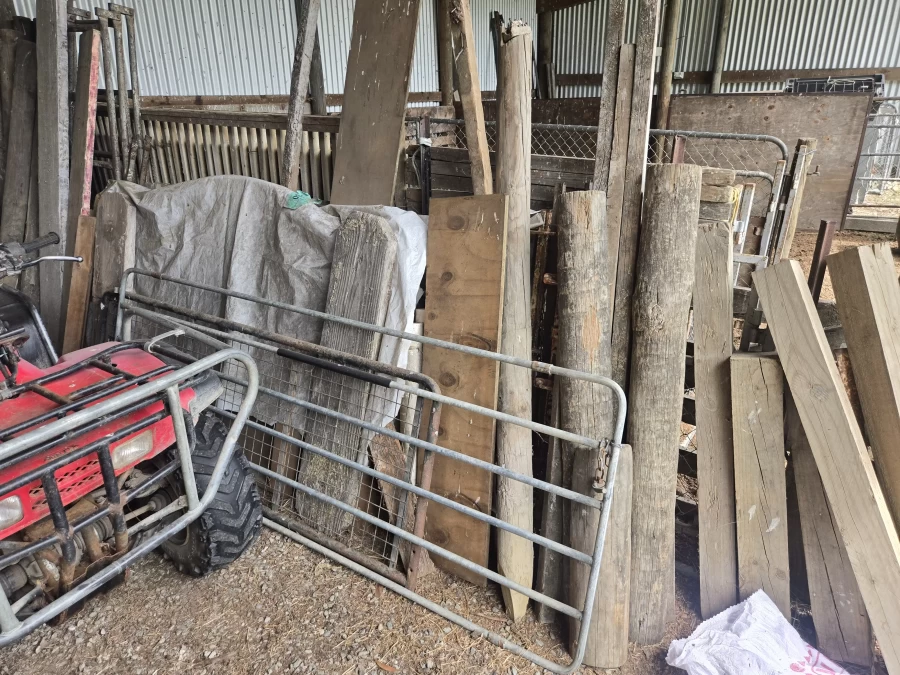 lg qty of farm gates – asst sizes, lg qty of timber incl Rimu,
